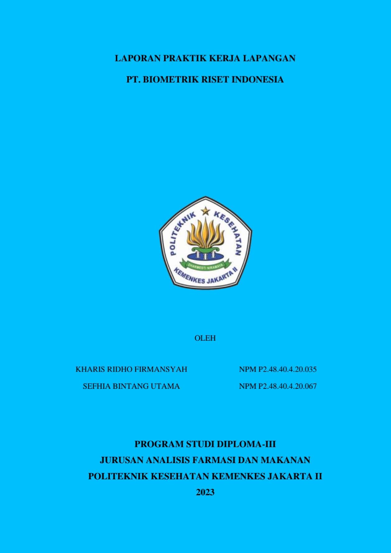Laporan Praktek Kerja Lapangan PT Biometrik Riset Indonesia